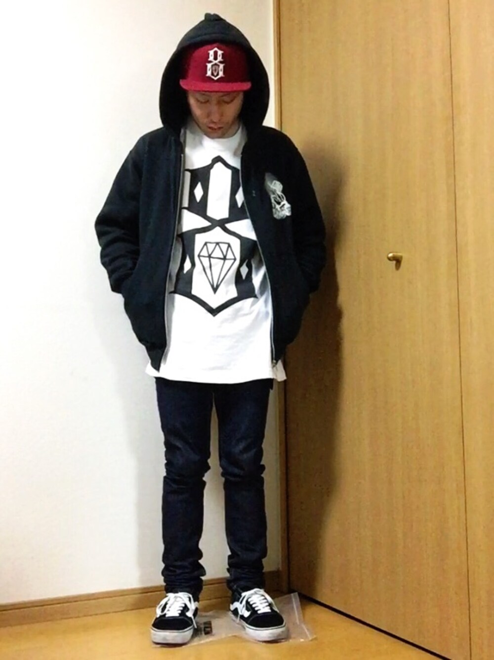 ®のパーカー「Pray with the microphone ZIP PARKA」を使ったコーディネート