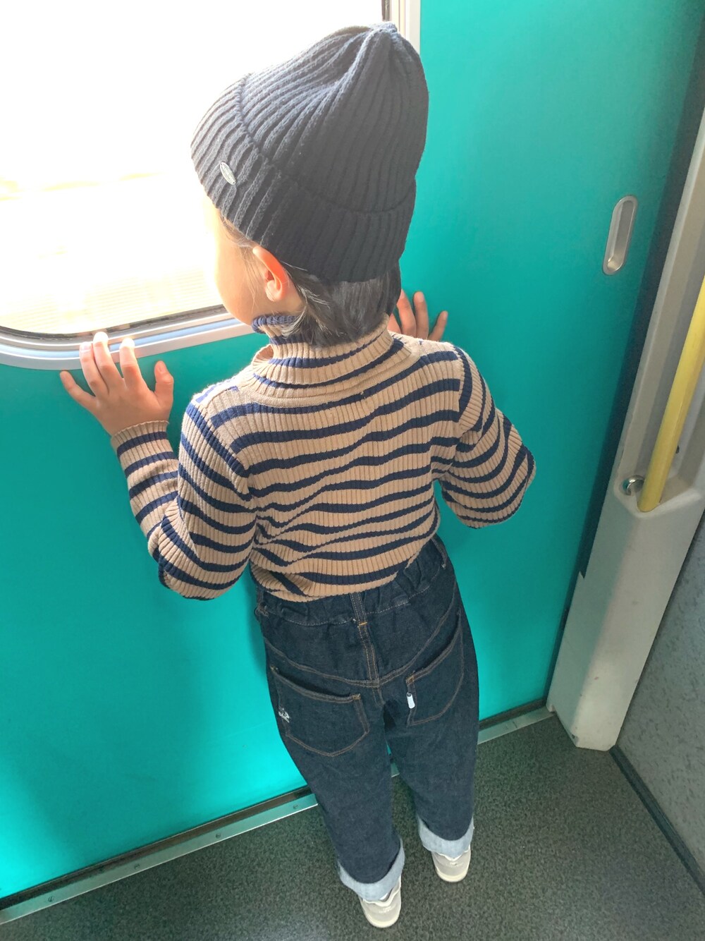 久しぶりの新幹線♪♪ ベージュとネイビーのハイネックボーダーに、このパンツがたまらない♡