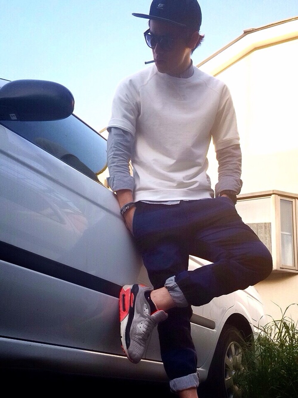 ちょっといっぷくー 帽子 FIFTYFIVE DSL シャツ HARE スウェットTシャツ URBANRESERCH パンツ FOREVER21 スニーカー AIRMAX 90