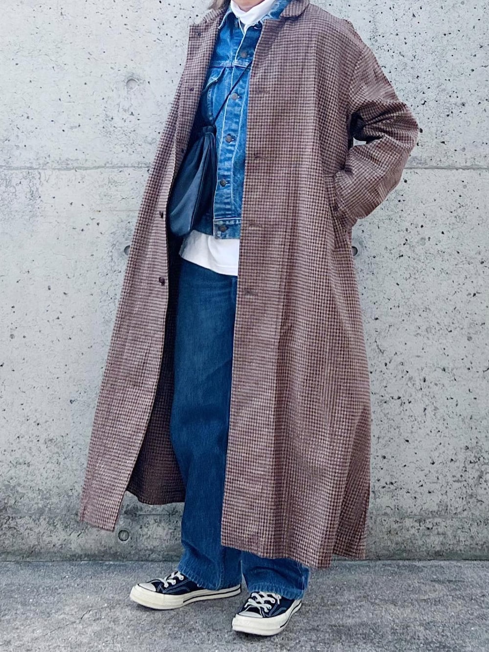 デニム×デニムにツイードコート