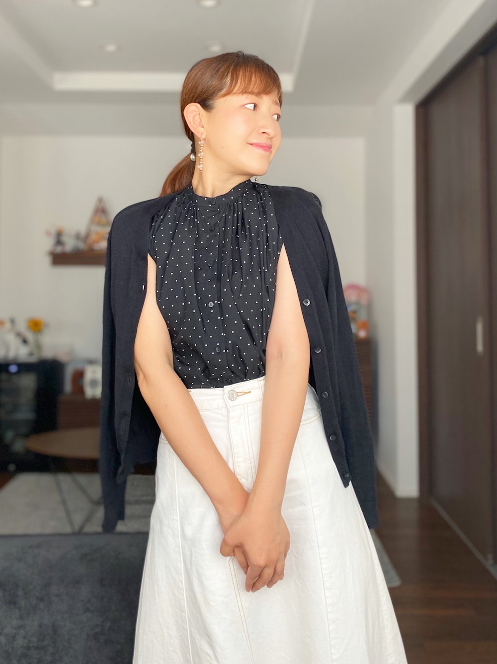 *りょうこいずむ*フォロー返し絶対☺️*のシャツ/ブラウス「ドットプリントギャザーブラウス」を使ったコーディネート