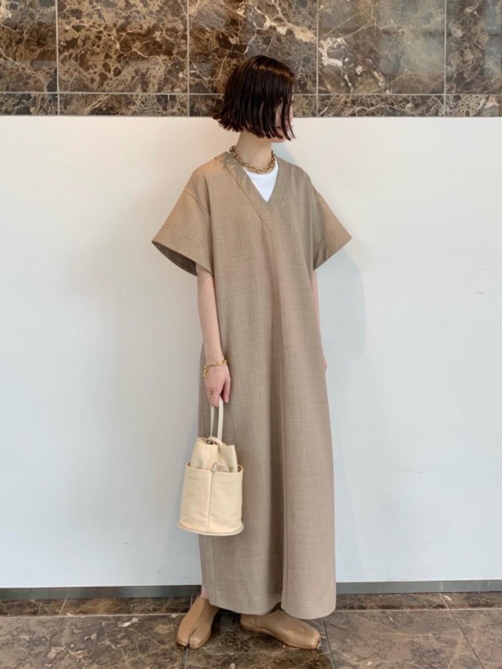 ●身長:168cm ●普段サイズ:ボトムス 0 /シューズ 38 【サイズ】 ワンピース:ゆったり 【素材感・着心地】 ワンピース:ハリのあるウール地により、立体的なシルエットがかわいいです。中に薄手のカットソーを合わせてレイヤードスタイルも楽しめます。