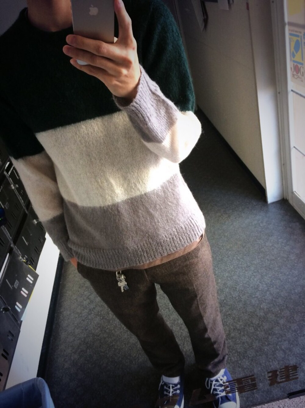 りょーまのニット/セーター「【雑誌掲載商品】モヘヤブロックニットクルー/535256」を使ったコーディネート