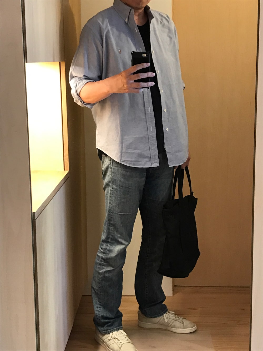 ryomtsのシャツ/ブラウス「BEVERLY HILLS POLO CLUB / ビバリーヒルズポロクラブ オーバーサイズ カーボンピーチツイル ロゴ刺繍 ボタンダウン長袖シャツ」を使ったコーディネート