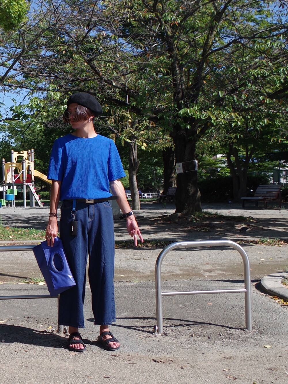 こんばんは、りょんしーです。 いつも青と黒のコーデをご覧いただき ありがとうございます。 公園で撮影でした。ぴーす これからお部屋の片付けをするので、短めです。 デニムパンツ初登場。 かわいいー。 もろレディースに寄せたスタイルにしました。 あ、丸メガネも初登場ですね。 いつも服を売りに行っている古着屋さんで購入しました。 やはり人に撮ってもらうと画質良いな。 まあ明るいからっていうのもあるだろうけど。 明日も撮ってもらいます。 では、ここまでお付き合い ありがとうございました。 おやすみなちい。