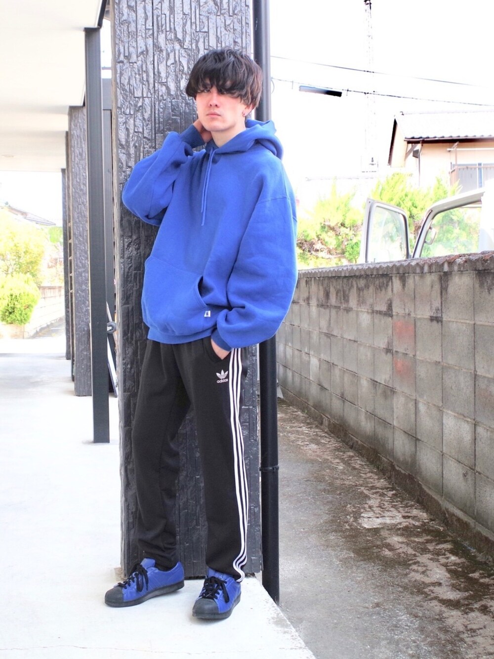 こんにちは、りょんしーです。 いつも青と黒のコーデをご覧いただき ありがとうございます。 今日はちょっと早めに。 そして短めに。 昨日は急いでて、載せるだけになってしまった。 パーカーは古着。 もしかして初登場…?? 探したけど見当たらなかった。 パンツはアディダス。 ジャージ。 スニーカーもアディダス。 カスタムのスーパースター。 シンプルな組み合わせ。 楽でいいよね。 では、ここまでお付き合いいただき ありがとうございました。 しゆ!!