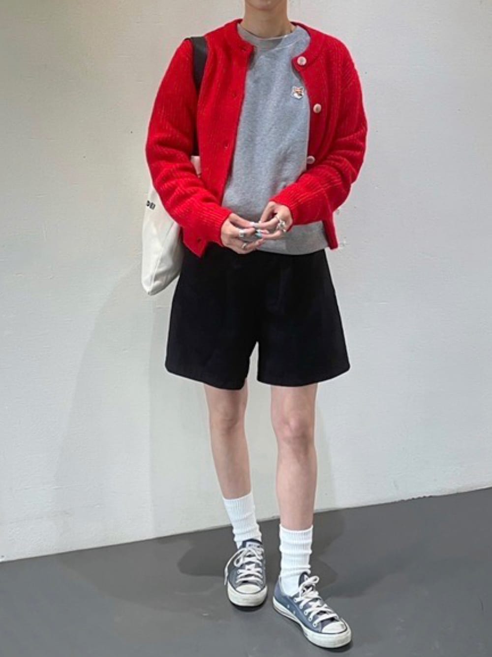 rectanglebyryonで販売中です! かわいいカーディガン。 2色展開です🙇♀️💕 赤は差し色に◎ シャツワンピに羽織っても間違いないやつ❤️ Instagram▶︎ryon_1224