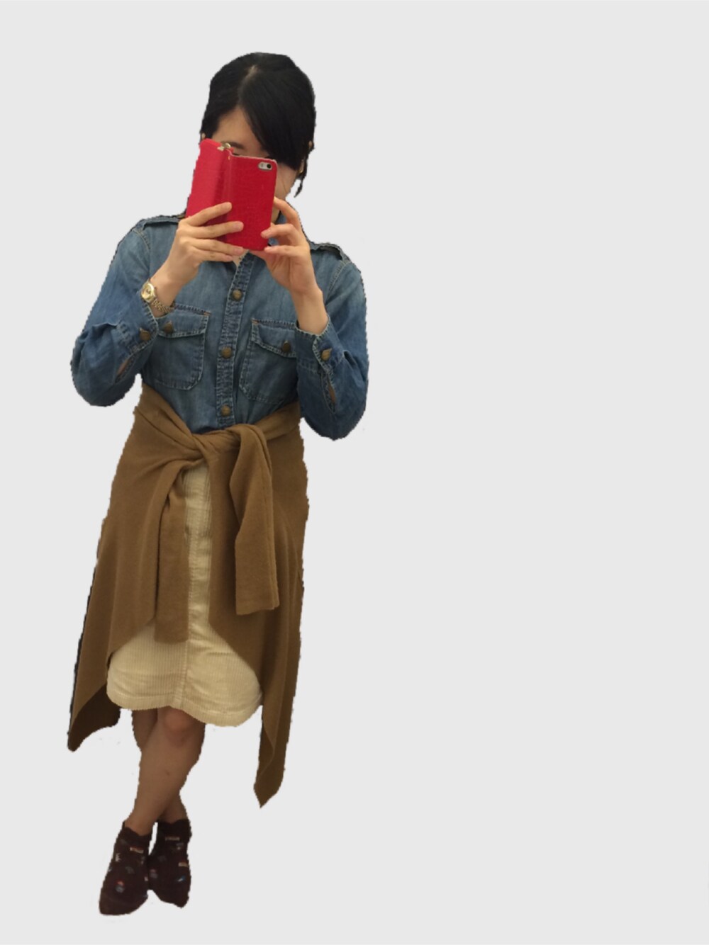 なんか、これ微妙?笑 やだ、認めたくない!笑 寒くてコーディガン?カーディガン?を家出る時に着てたけど、お買い物で試着ついでに、腰に巻いてみたらスカートみたい ー! やっぱりこの白いスカート単品で履くと不恰好になってしまう。(スタイル良くないからね😂) 一工夫必要な曲者です。