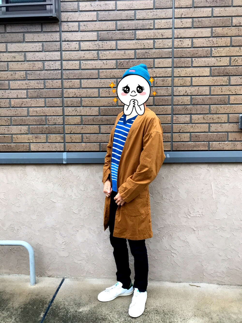 こんにちは!すっかり寒くなってきましたね。。 今日のコーデは秋らしいコーデにしました! ライトブラウン色のロングジャケットをベースに、インナーにブルーのボーダーニット。 パンツは黒スキニーです! 靴は定番のスタンスミス✨ どんなコーデでも相性抜群ですね! 良かったらフォロー、いいね、よろしくお願いします!