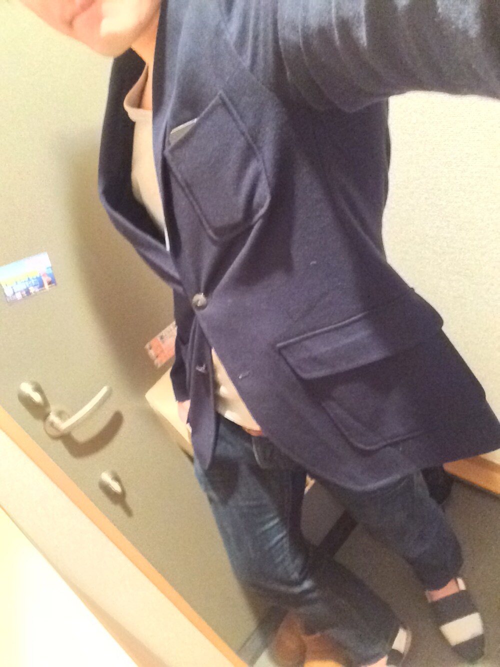 ネイビー系でまとめてみました。 ちょっと寒いかな〜。 全身写すのとっても難しい。。笑 うまく撮るコツを教えて下さい!