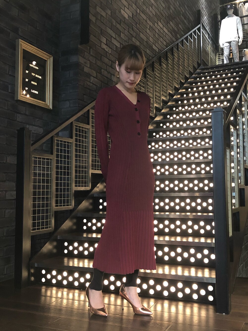 スリット入りレギンスがセットの ニットワンピース綺麗なlラインが スタイルUP効果◎