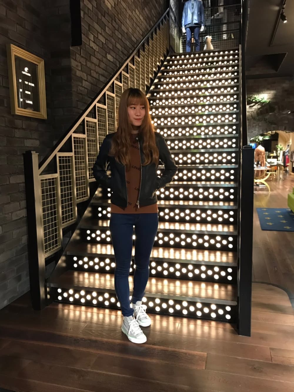 レザーにデニムを合わせて カジュアルなコーディネートにしました。 コンパクトなレザーでどんなボトムでも 合わせやすいシルエット。