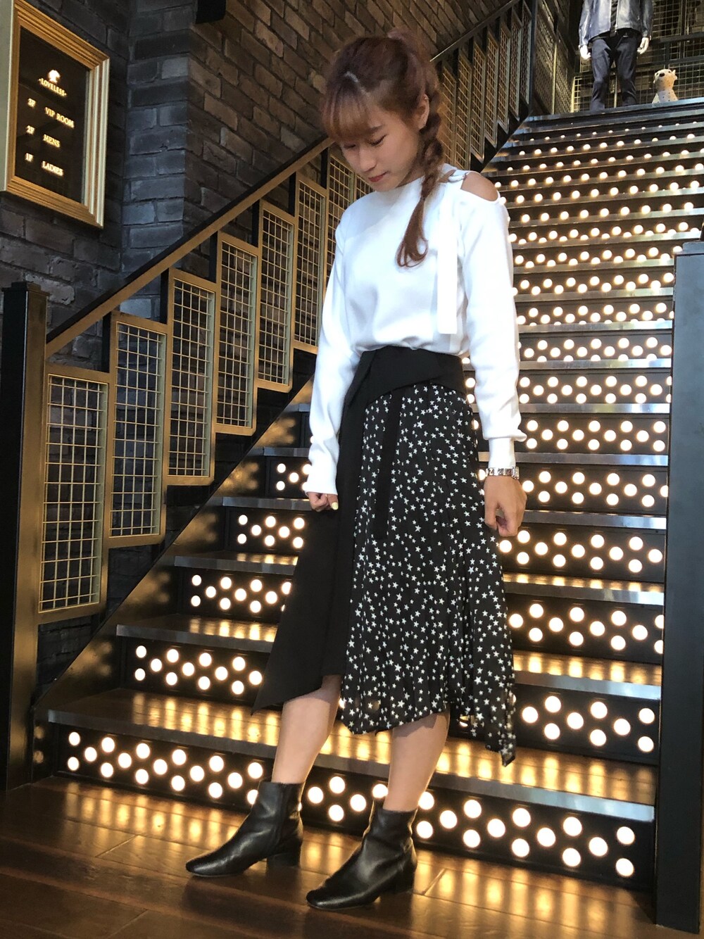 ワンショルダーで大人っぽく、 モノトーンコーデにしました。