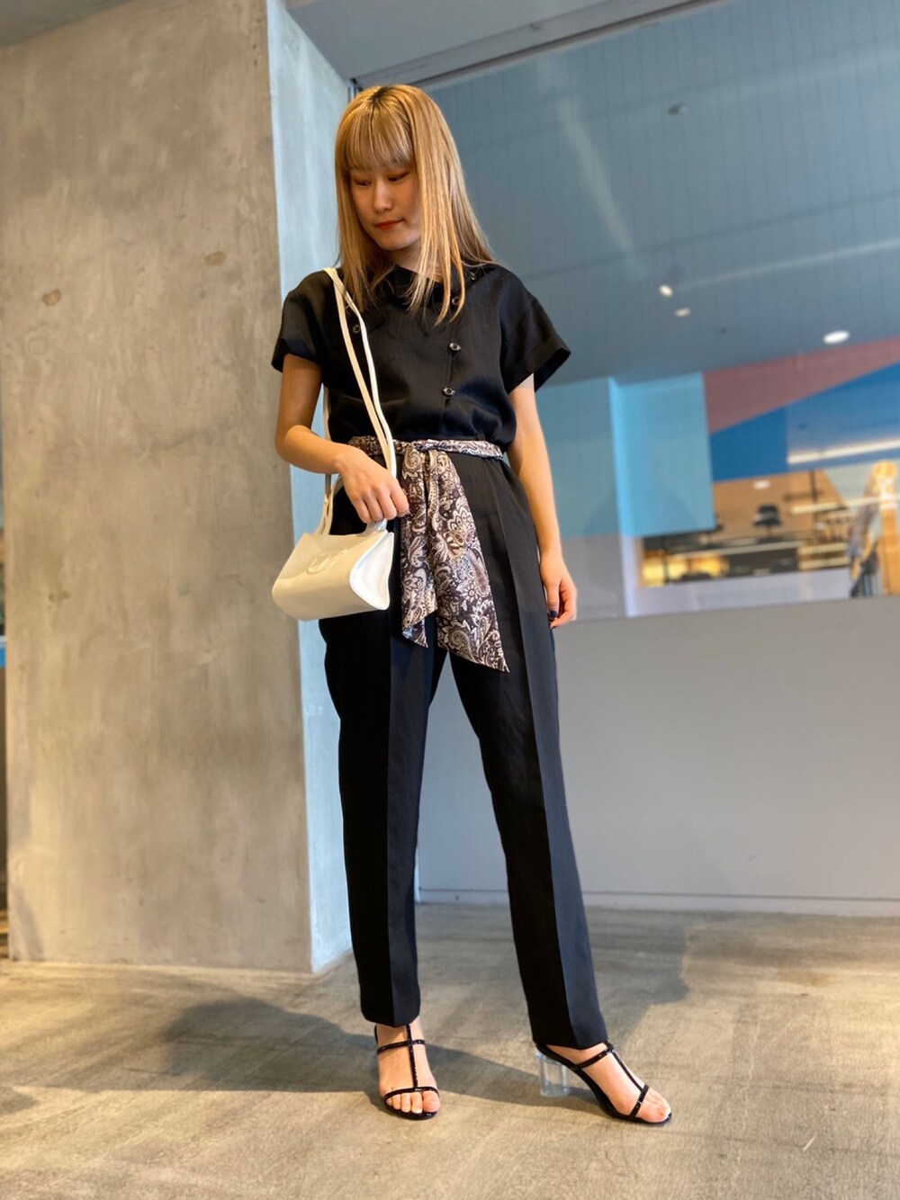 黒のサファリスーツで かっこよく上品な雰囲気のコーディネートに。
