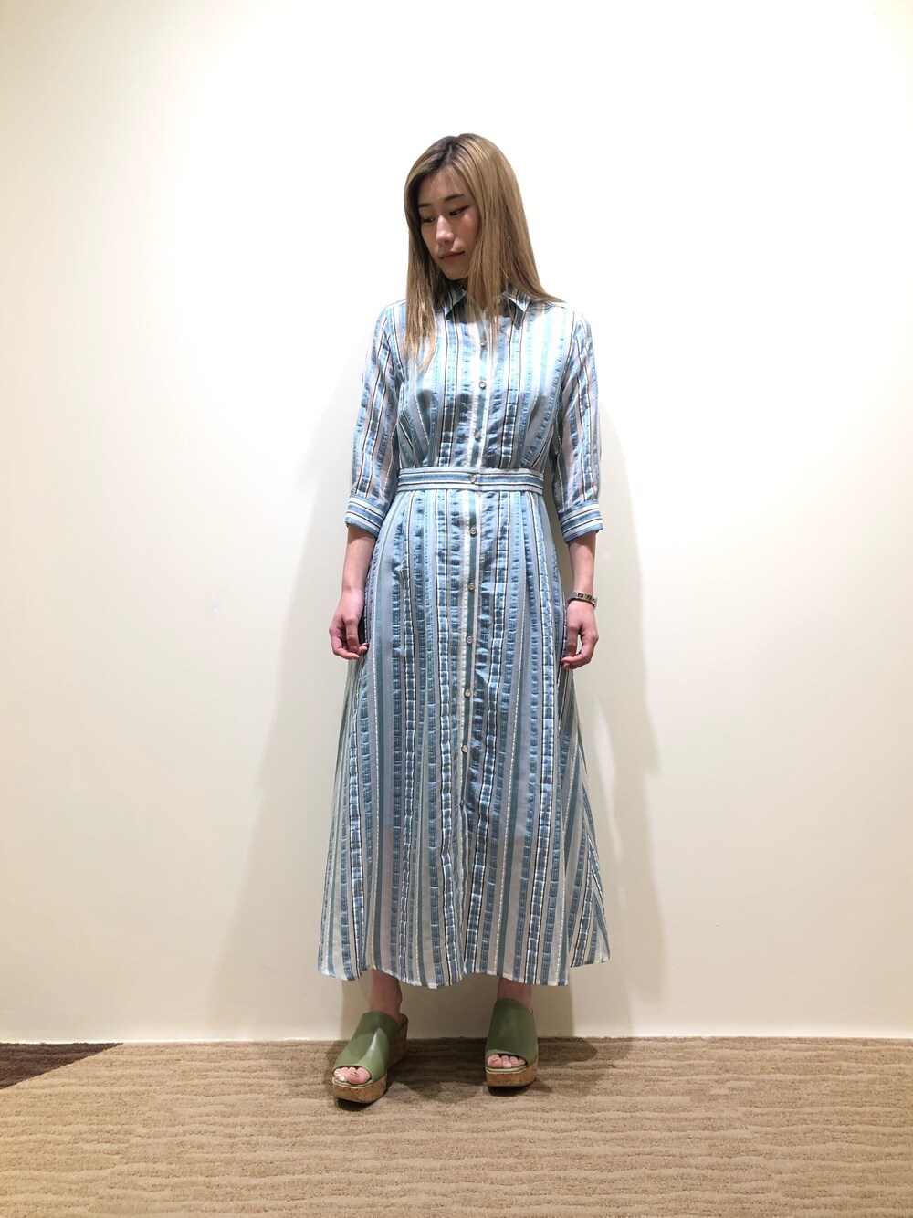 シアー素材と爽やかなカラーの 夏らしいワンピース。 一枚でおしゃれ感のあるコーディネートに。