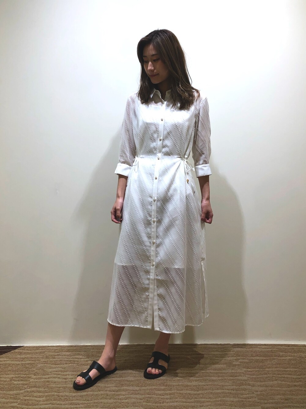 ホワイトのシアー素材ワンピースで 爽やかなコーディネートに。