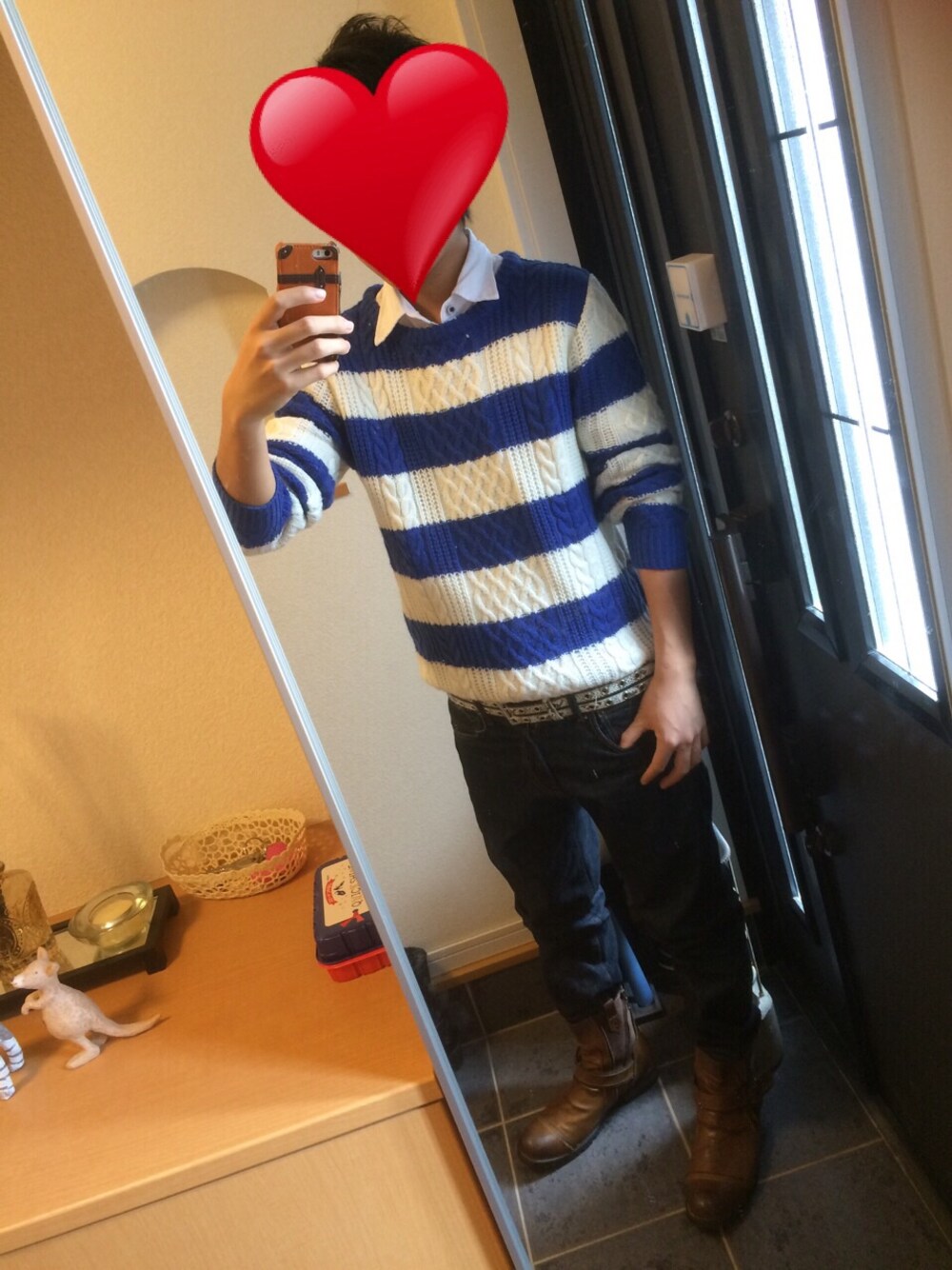 めちゃ久しぶりの更新です‼︎ 青白のセーター着てみました‼︎ 下のズボンと組み合わせがいまいちわかんないんで なんかコメントくれたらうれしです(。-_-。)