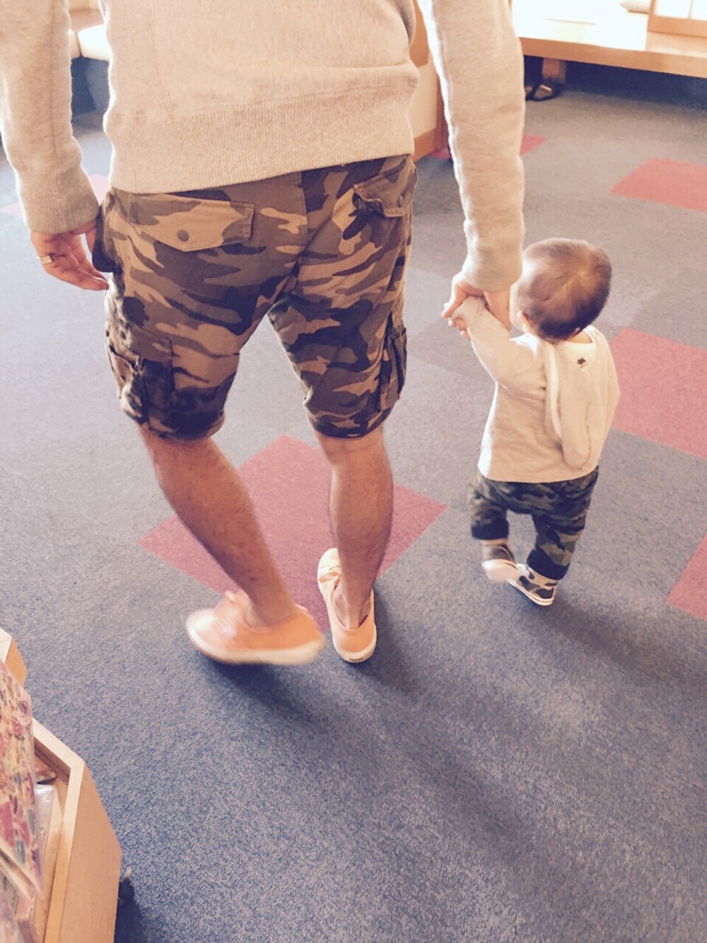 グレーパーカー&迷彩パンツのお揃いコーデ