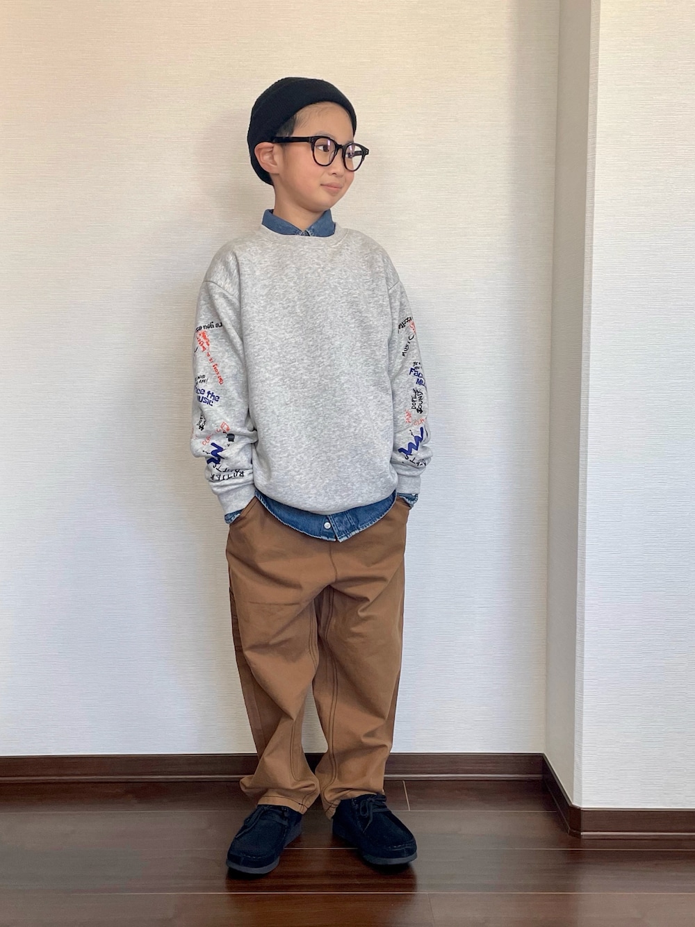 ryoooutaaaのスウェット「【PAIRMANON STREET】裏起毛 袖 プリント グラフィック トレーナー」を使ったコーディネート