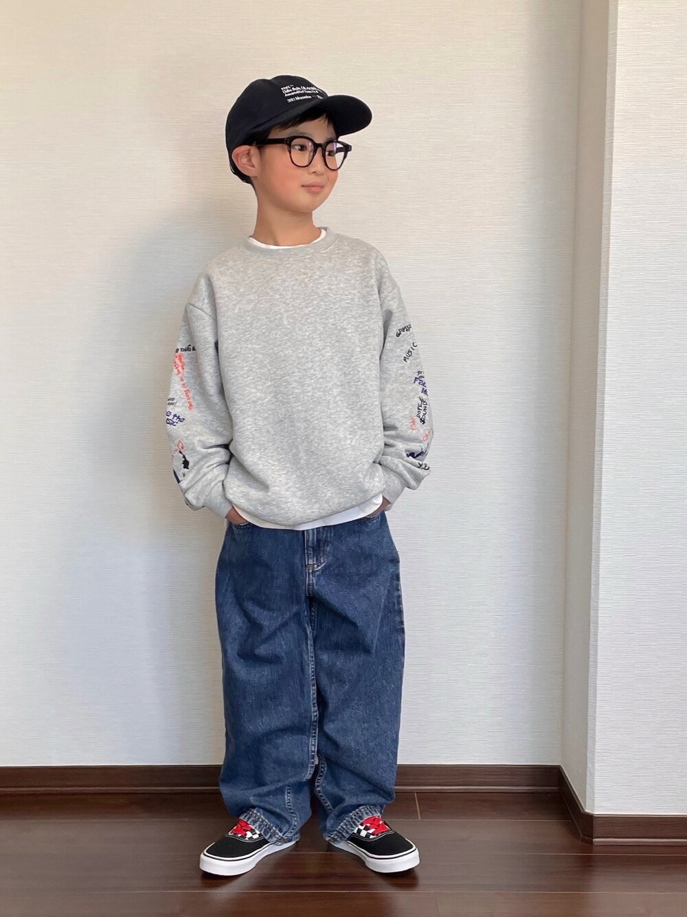 ryoooutaaaのスウェット「【PAIRMANON STREET】裏起毛 袖 プリント グラフィック トレーナー」を使ったコーディネート