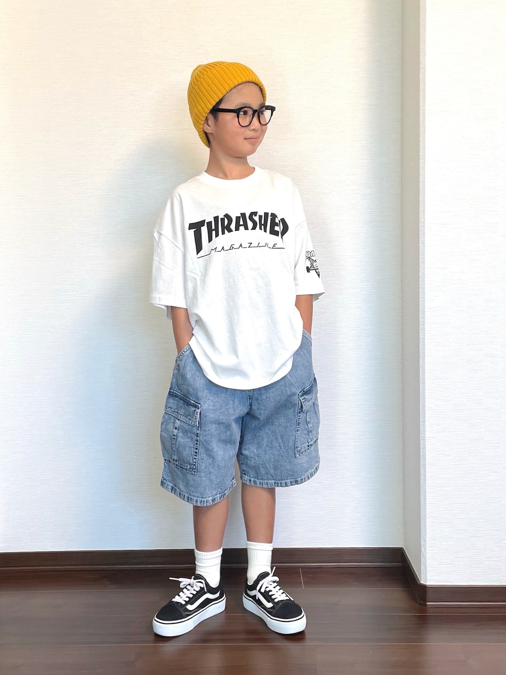 ryoooutaaaのカーゴパンツ「【ジュニア対応】ワイドカーゴハーフパンツ」を使ったコーディネート