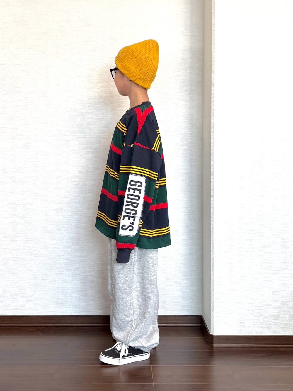 GEORGE'S¥3,960PAIRMANON STREET¥1,990VANS¥3,850この画像から似たアイテムを検索できます7361344お気に入り (32)440ryoooutaaaさんへのコメントNO COMMENTコメントはスマートフォン用アプリからご利用できます着用アイテム¥3,960GEORGE'SGEORGE'STシャツ/カットソー (グリーン系)Tシャツ/カットソーサイズ:150cm着用コーデ:3件商品を見るZOZOTOWNで購入する¥1,990PAIRMANON STREETPAIRMANON STREETスウェットパンツ (グレー系)スウェットパンツサイズ:140着用コーデ:22件商品を見るZOZOTOWNで購入する¥3,850VANSVANSスニーカー (ブラック系)スニーカーサイズ:1Y着用コーデ:411件探すZOZOTOWNで探すryoooutaaaのTシャツ/カットソー「【KIDS】ボーダーロゴロンT」を使ったコーディネートご覧いただきありがとうございます˚✧₊⁎2026.2.24着用ブランドGEORGE'SPAIRMANON STREETVANSタグ#春コーデ#春色#ビッグシルエット#ストリート#カジュアルコーデ#休日スタイル#ニット帽#めがね#ロンT#オーバーサイズ#スウェットパンツ#ワイドパンツ#スニーカー#お出かけコーデ#ボーダーモデル情報キッズ・132cm2ブロック似ているアイテムGEORGE'S × Tシャツ/カットソーPAIRMANON STREET × スウェットパンツVANS × スニーカーryoooutaaa@ryoooutaaa / 132cm / KIDS / 2ブロック0コーディネート0フォロワー注目のコーディネートアプリでもっと見るもっと見る