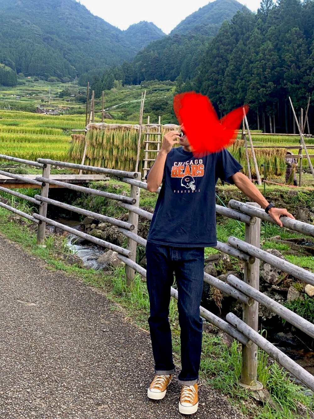たわわな稲穂で初秋を感じてきました。 Tシャツのオレンジ文字がクールでキューティーで気に入ってます。 Tシャツ着れるのもあと少しと、、寂しいですなぁ。