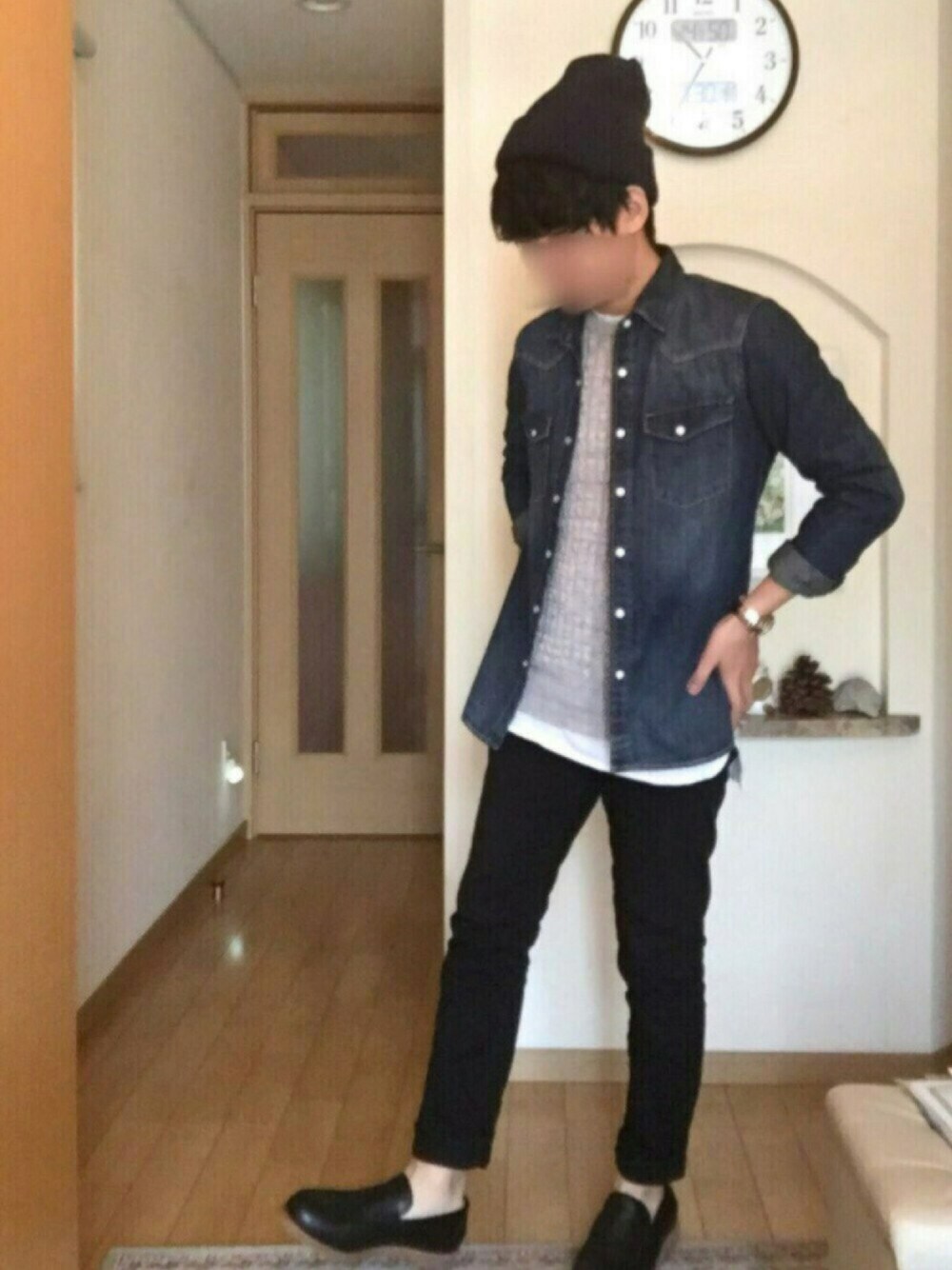 いつもイイねありがとうございます(๓˘▽˘๓) デニムシャツは生地が柔らかくて良いです ҉٩(*´︶`*)۶҉ ポイントは春ニットとロングカットソーの レイヤード٩(ˊᗜˋ*)و 夜はまだちょい寒かったですw