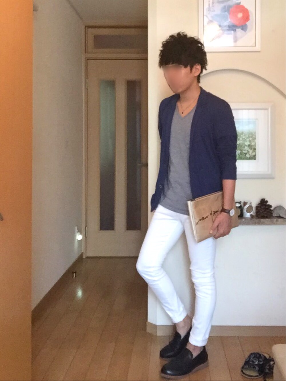 いつもイイねセーブありがとうございます (๓˘▽˘๓) 今日は髪型の雰囲気もわかるようにちょい よりめに撮りました(๑´∀`๑)」笑 髪型はマッシュ系が多くて服により アップバングで2ブロック見えるように 後ろに流したりアシメにしたりしてます。 ワックスはLIPPSの08とクールグリースを 髪型により比率変えて混ぜて使ってます! ポイントはブルーのジャケカーデ✨ カットソー素材でさらっと着れて涼しいです✨ 足元はローファー履いてます。