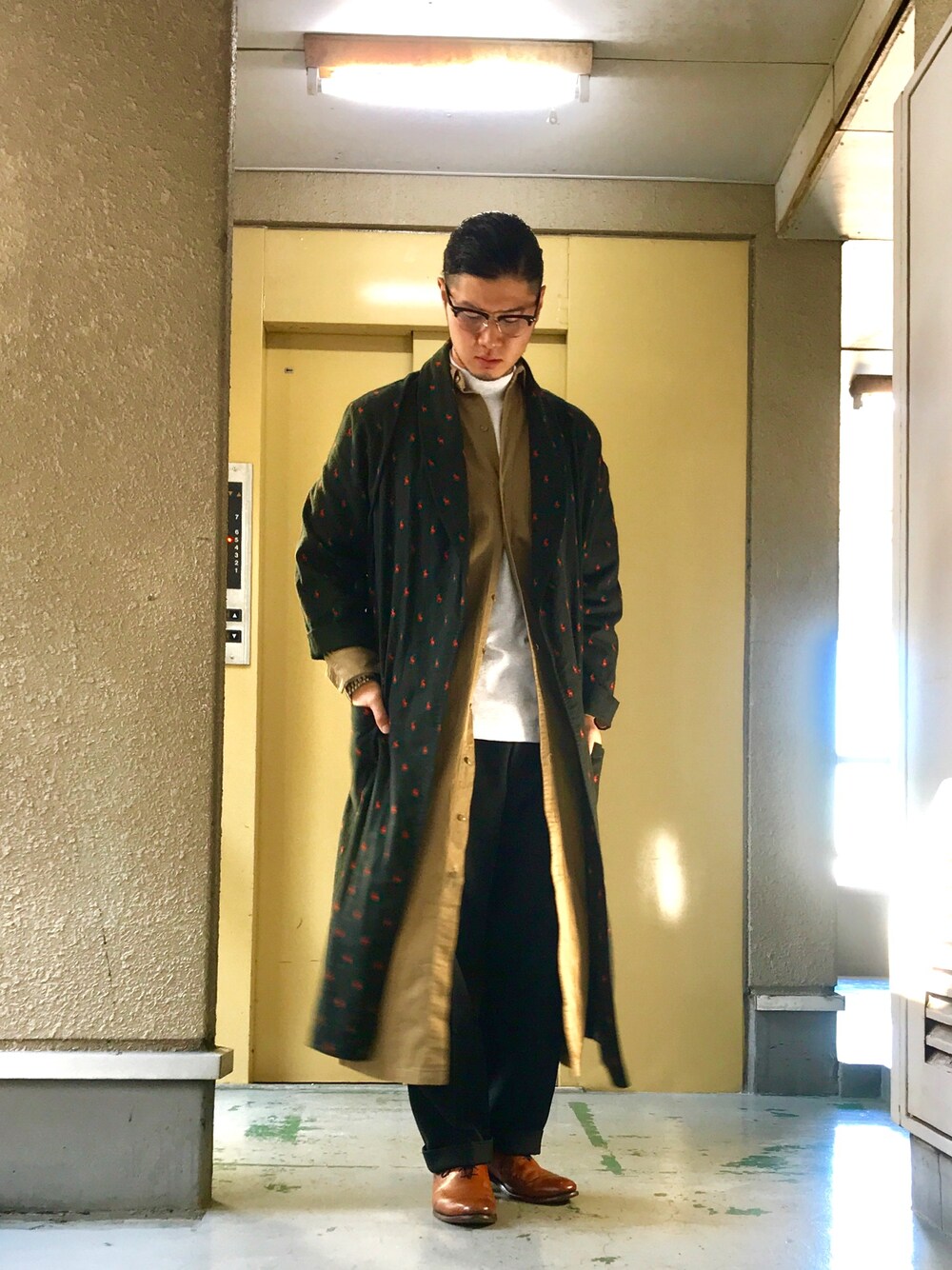 なんか魔法飛び出しそう。 ガウン主役のロング丈レイヤード。 一回やってみたかった! ラルフのロング丈シャツとラルフの総柄ポニーガウンのレイヤード。 結構好き♫ ルーズだけど ウールスラックスとレザーシューズ、メガネで少し大人っぽく。 今日は手ぶらでお出かけしてきました☺︎