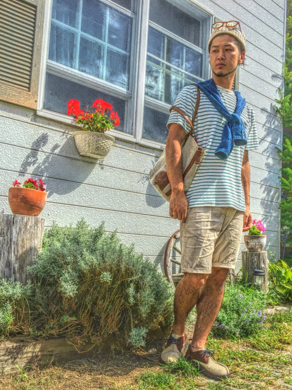 これまたベージュがベースのコーデ。 この顔がめちゃくちゃ気にくわないですがお許しを。笑 デニムシャツを肩からかけいるのは、昨日と同じくネイビーを挿してボヤけるのを防止の為。笑 それと気温も夜とか低くなってきているので着れるようにということで(・ω・)ノ このボーダーTシャツはやっぱ着心地が良い♩ パイル地は良いですね♩ そしてこのスニーカーがReebokなんですが、なかなか今時履いてる人見かけません。何だっけなー名前。シャークソールといってギザギザのソールなんです!ちょっとマニアックなスニーカーで人と被らないし、Reebokだとわからないので気に入ってます☺︎ 「それReebokなの⁉︎」という人の反応を見るのが好きです。(笑) 素材は春〜秋って感じ。 またスニーカーの名前思い出したら出します。笑 あー、何なのこの自分の顔!(笑)