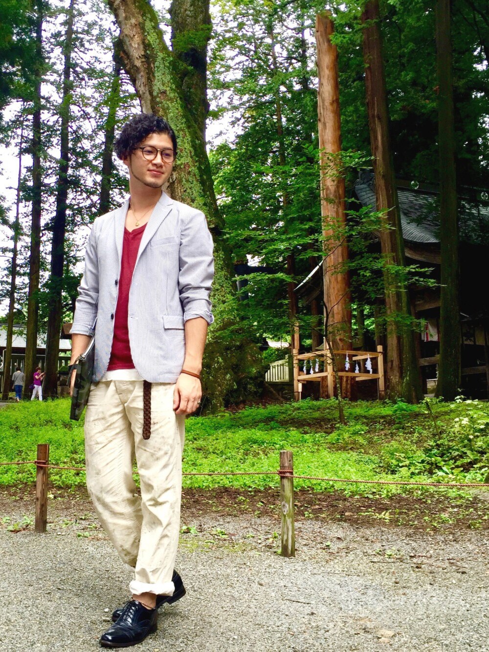 期間空きましたー😅💦 昨日のコーデを。 地元の諏訪大社にて。 7年に一度の奇祭、御柱祭に使われた御柱の前にて。笑 本宮ニが後ろにあります。 本宮一ver.も。笑 ここはマイナスイオン最高。 この日は夜にパーティーがあったためキレイ目。 はじめはシアサッカーのセットアップにしようとも思いましたが、季節感的にどうだろう…とか、ありきたりな感じがしたので、インナーにエンジ、パンツにペインターでちょっと自分ぽくしました! レザーシューズで引き締めて、なんとか今の時期でもイケる感じになりました!笑 やっぱキレイ目でもこういう感じが自分ぽいなーって、思います。 ルーズ最高。笑 昨日は飲み過ぎて、まさかのコンビニの自動ドア辺りで立ち寝をするという奇跡を起こしました。笑 自分はどこでも寝れるんだなーと改めて思いました! 飲み過ぎ注意ですね。