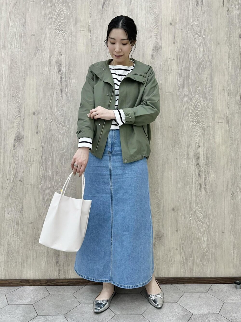 マウンテンパーカーとボーダーを合わせた王道春コーデ。 マウンテンパーカーは花粉ガードと撥水機能付き。 とても軽く着やすいです!! ボトムスはデニムパンツではなくスカートにしたことで 女性らしさがアップします。