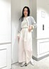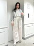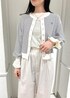 ボーダーのカーディガンを主役に淡色コーデを組みました。 カーディガンが胸元の刺繍やお袖のシルエットが可愛くてポイント!! シアートップスをレイヤードし今年っぽさもプラスしました。