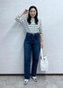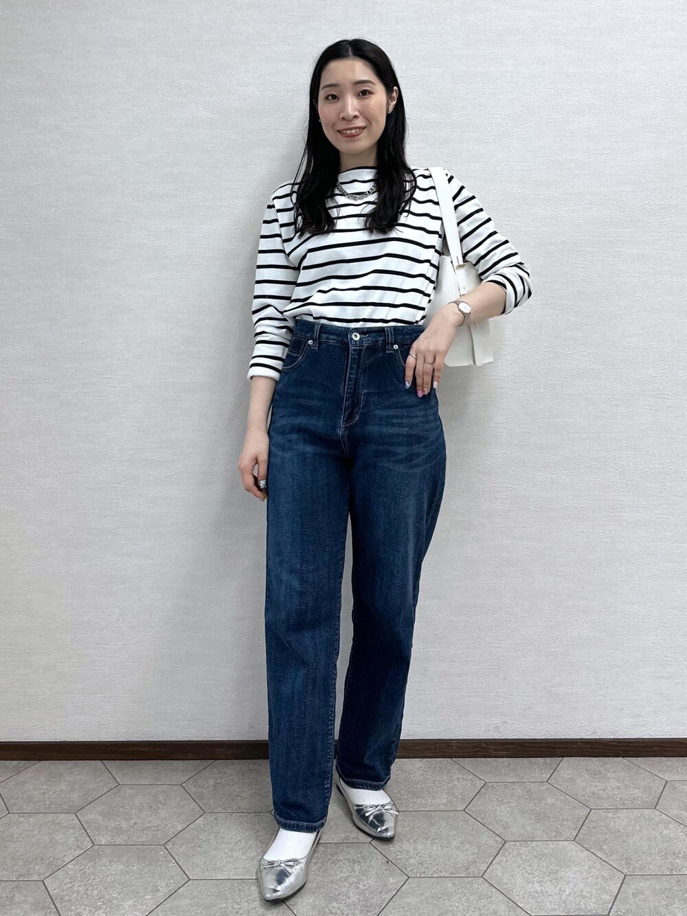 ボーダー×デニムで春の王道コーデです。 シンプルな組み合わせですが、腕をまくったり タックインをすることでオシャレな雰囲気になります!
