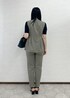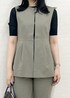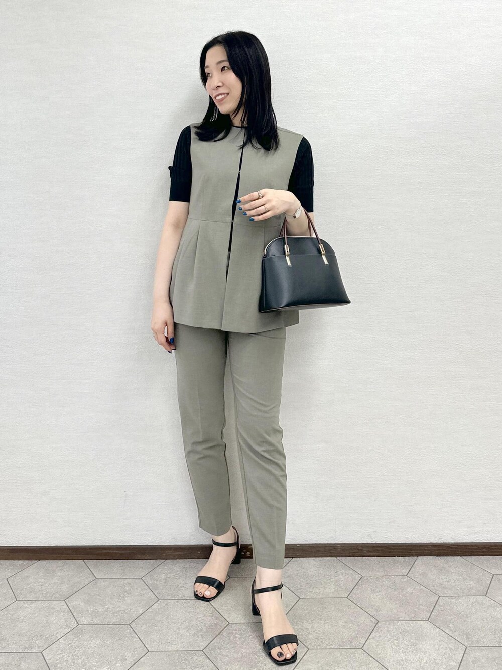 オススメのジレを使ったオフィスカジュアルコーデ。 ジレは切り替えでペプラムのデザインになっていて スタイルアップします!! パンツはセットアップのパンツできちんと感を出しました。 インナーはシアー素材で抜け感をプラス◎