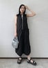 撥水機能付きワンピを使ったレジャーにオススメのコーデ。 裾のデザインがトレンド感がありオシャレな印象になります。 ワンピの下にパンツをレイヤードするのも◎
