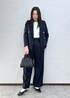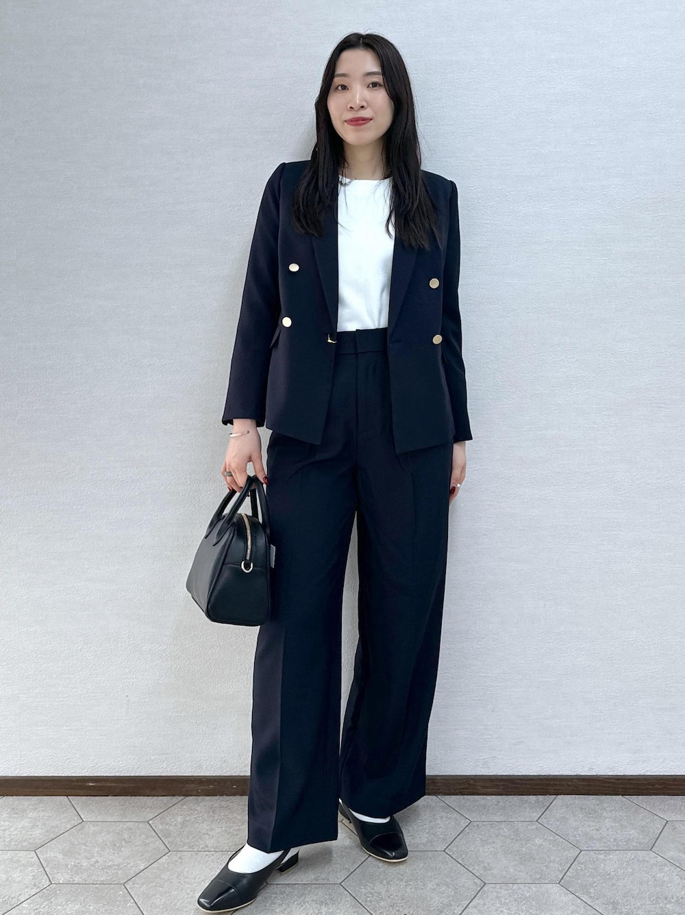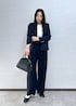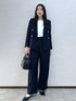 定番で人気の金ボタンジャケットのセットアップ。 インナーはシンプルなトップスを合わせたお仕事スタイル。 ブラウスに変更でセレモニーにも使えます。 更にパンツを変化するとカジュアルにも使えます♩