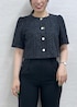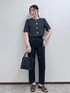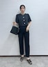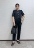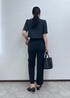 夏素材のジャケットとパンツを使ったブラックコーデ。 全身ブラックでも素材が夏らしいと重くなりません! 金ボタンのジャケットは女性らしいシルエットがポイント! お仕事からお出かけ、学校行事など色んなシーンで着回せます♩