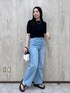 涼しくて快適なニットにキラキラのデニムを合わせた大人カジュアルコーデ。 夏の色んなシーンで活躍するコーデです!
