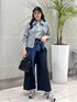 ラフに着用出来るショートアウターを使ったコーデ。 インナーのスウェットはアウターと同系色でまとめて統一感を出し、デニムシャツを腰巻きしてトレンド感をプラスしました。 キャップやスニーカーでカジュアルダウンした大人カジュアルコーデです。