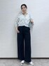 春まで着回せる淡いブルーのカーディガンにネイビーのパンツを合わせたブルーコーデ。 カーディガンは凹凸感と短丈シルエットがとても可愛い♩ バッグも淡いブルーを合わせて統一感をアップしました。