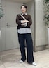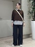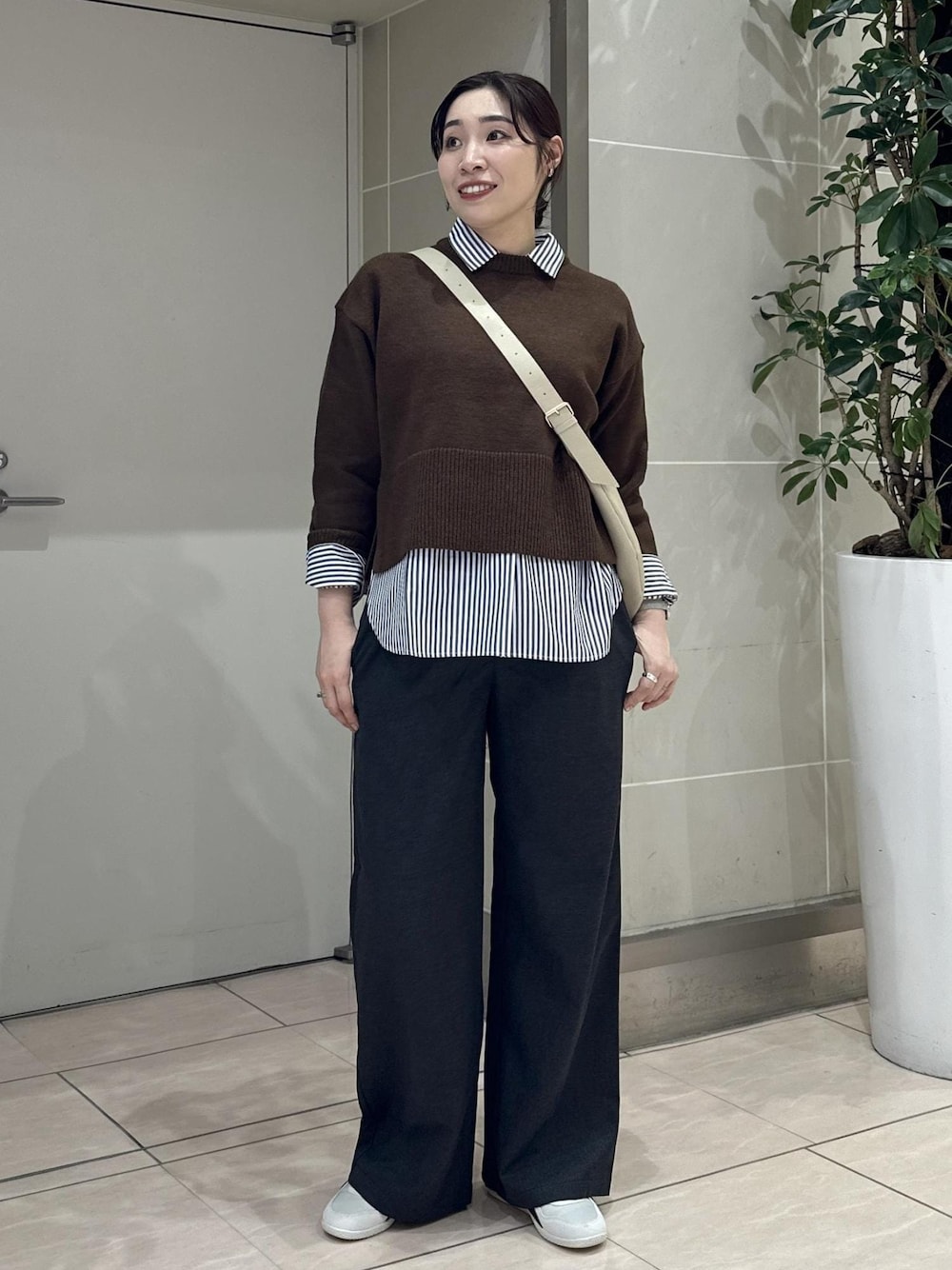 セールでお得に買えるアイテムだけでコーデを組みました! 定番のカラーニットに新色のブラウンが登場! ストライプのシャツをレイヤードして軽さを出しました。 足元はスニーカーでカジュアルな雰囲気に♩