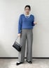 鮮やかなブルーニットが目を惹くコーデ。 ラメが入ったとても華やかで大人っぽいニットに 安心丈のマウンテンパーカーを合わせました! アウターを脱いでも可愛いコーデです♩