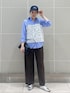 この春トレンドのレース素材のビスチェときちんと感のあるシャツを合わせました。 パンツはブラウンを合わせたことで大人の色合わせを楽しめます。 キャップを被ってカジュアルダウンをしてラフな雰囲気で仕上げました♩