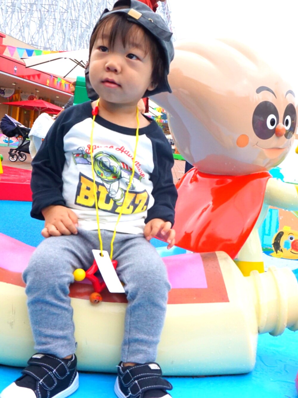 ★過去コーデ 9月に行った アンパンマンミュージアムのコーデ☺︎ 見つけて即買いした GLOBAL WORKのラグラン👏👏💯 小雨がぱらついていたので パタゴニアのJKTも着ていました☔️
