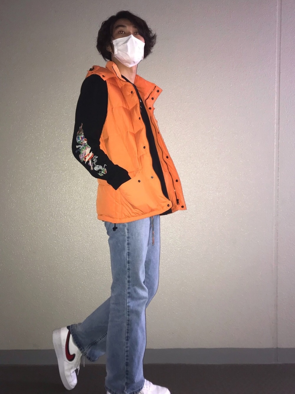 五日目投稿😁ちょっとは慣れて来たかも 久々にベスト!店頭4000ぐらいだったので即買いしました😊 袖口から見えるLEFT ALONEの刺繍がかわいい🤔 ------------------------------ 過去の投稿へのいいね、save、私へのフォローありがとうございます! 少しでもいいなと思って頂けたらいいね、save.フォローお願いします🙂励みになります! ~~~~~size~~~~ ロンT XL ベスト M パンツ w32 l34 大きめに着てます シューズ 27.5