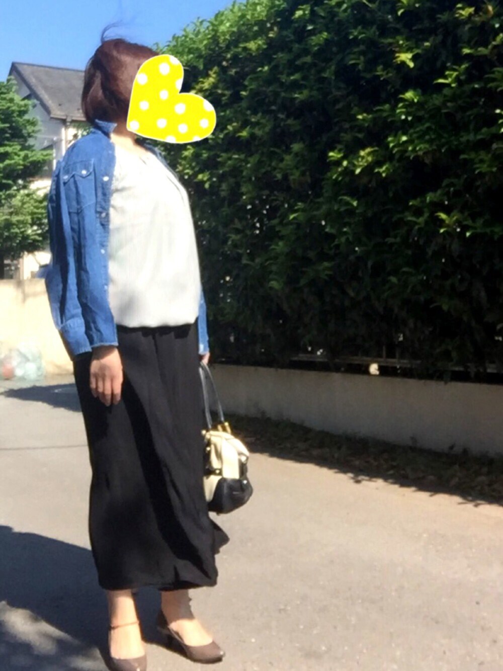 会社にスカーチョは初めて。 デニムシャツは、BEAMSBOYで一目惚れしたorslowのもの。or slowいいですね。肌触りや色合いが最高です。