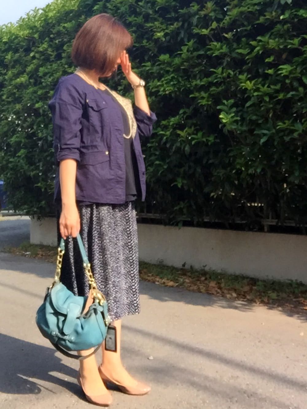 月曜です。ずっと同じバッグなのを反省し、ターコイズブルーのbeaureバッグを奥から引っ張り出しました。