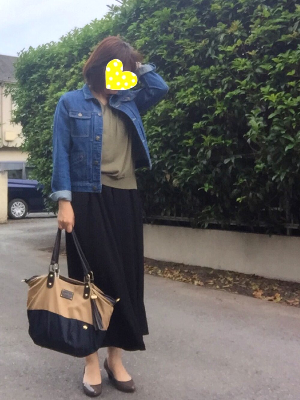 七分袖のノーカラージャケットにしようと外に出たら肌寒いので、またジージャンにしてしまいました。